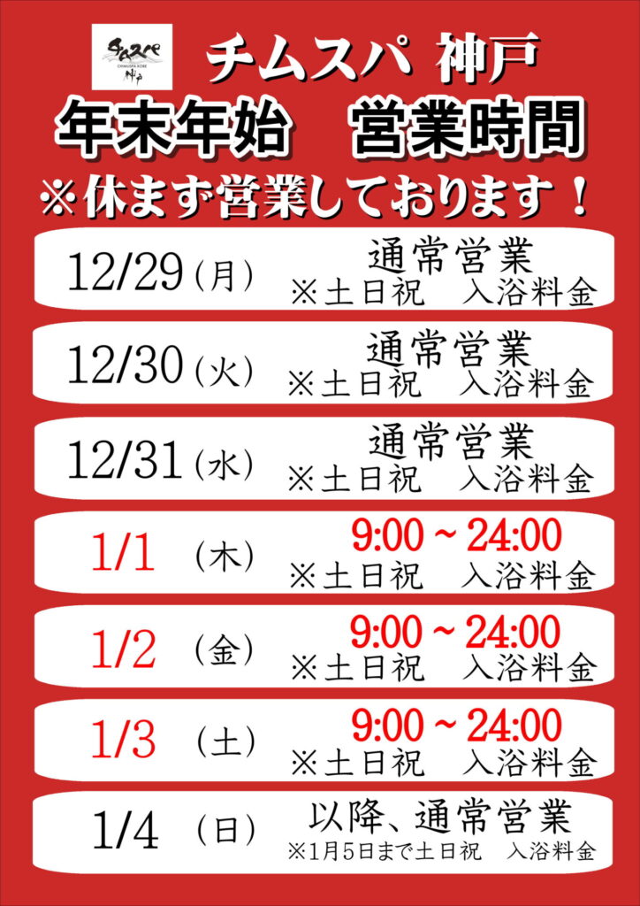 (休みなし!)年末年始営業時間のお知らせ